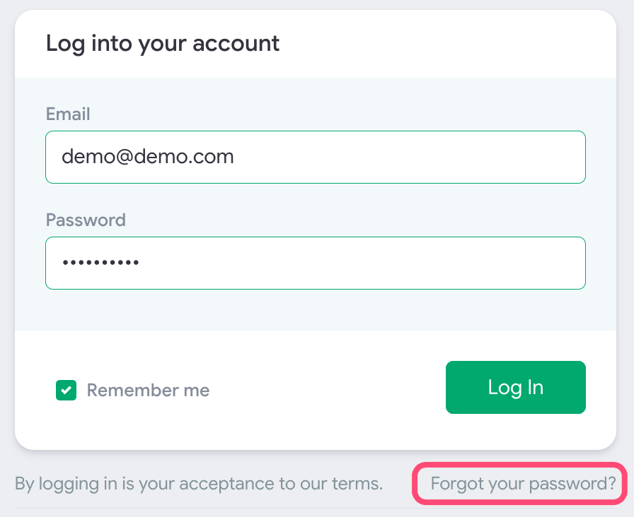 If you or a merchant has forgotten their password to log in, they may utilize the "Forgot your password?" link at the login screen.