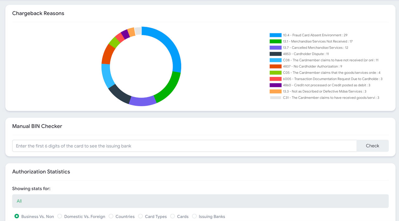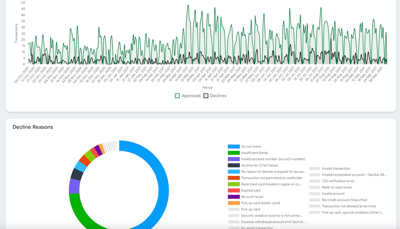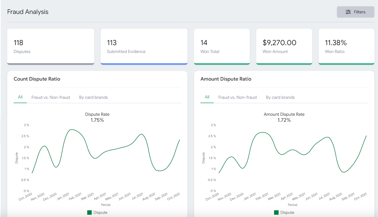 The Fraud Analysis page provides merchants with up-to-date and historical transactional data tailored toward risk analysis.
